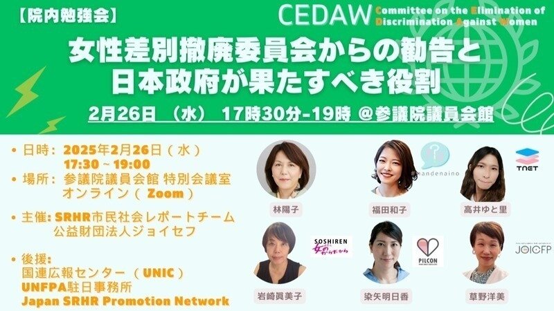 ・女性差別撤廃委員会の日本審査で指摘されたこと SRHRの観点から SDGsジャパンと考える~危機突破のカギ 2025年1月7日